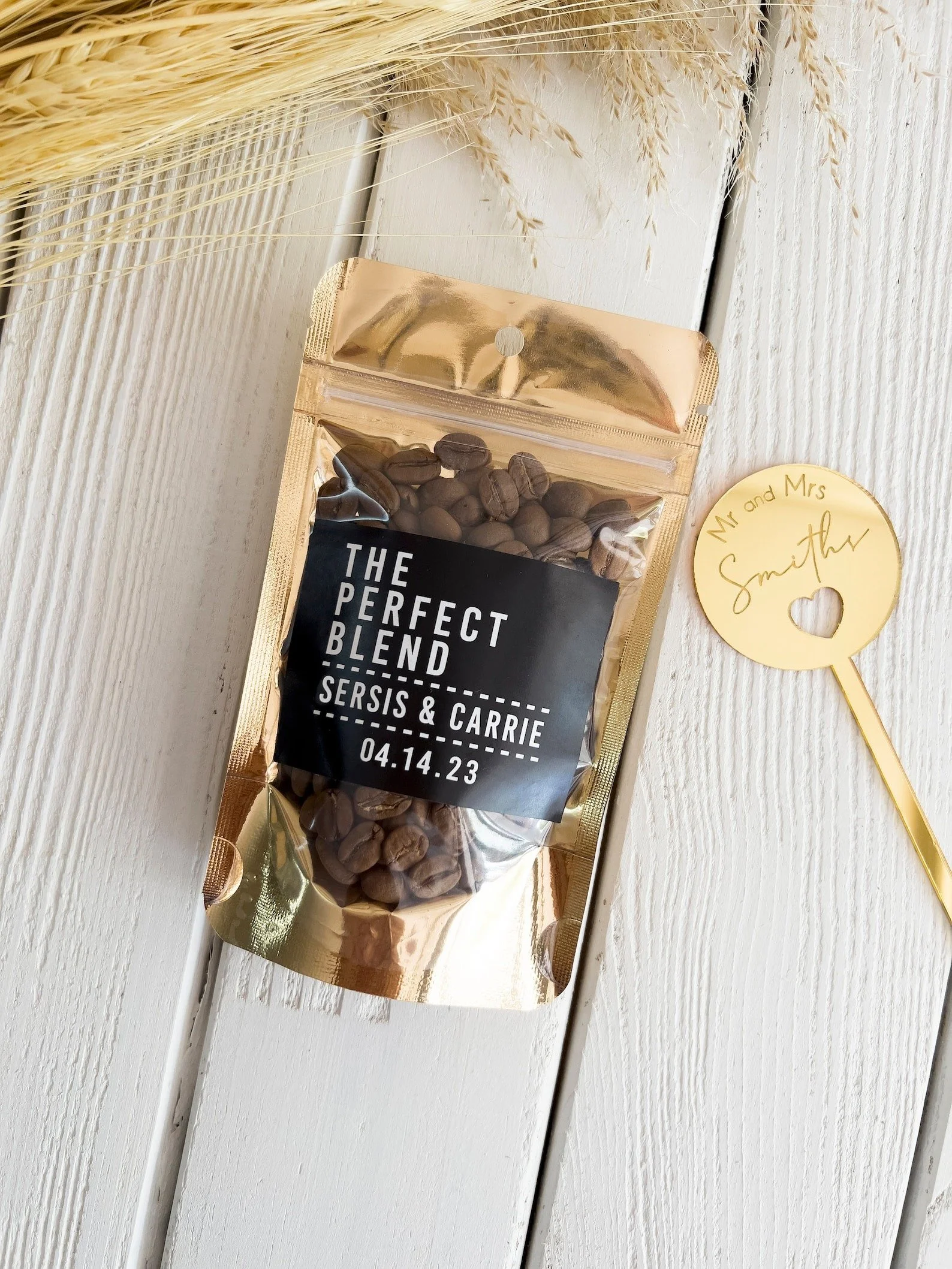 For example, if you’ll be gifting them a bottle of wine, be sure to also include a wine bottle opener. Likewise, if you’re gifting coffee or tea, be sure to also include a mug so they can enjoy their favor during your wedding weekend.